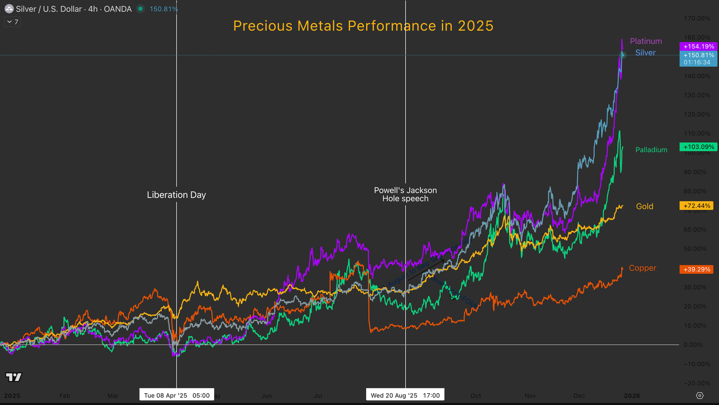 THE BIG 3__ Disinflation accelerating CPI, shelter, goods and energy all cooling __ Liquidity + Leverage More of everything in the system __ Hard Assets and Unlikely Winners Metals and EM are still running. | ![]() | ||